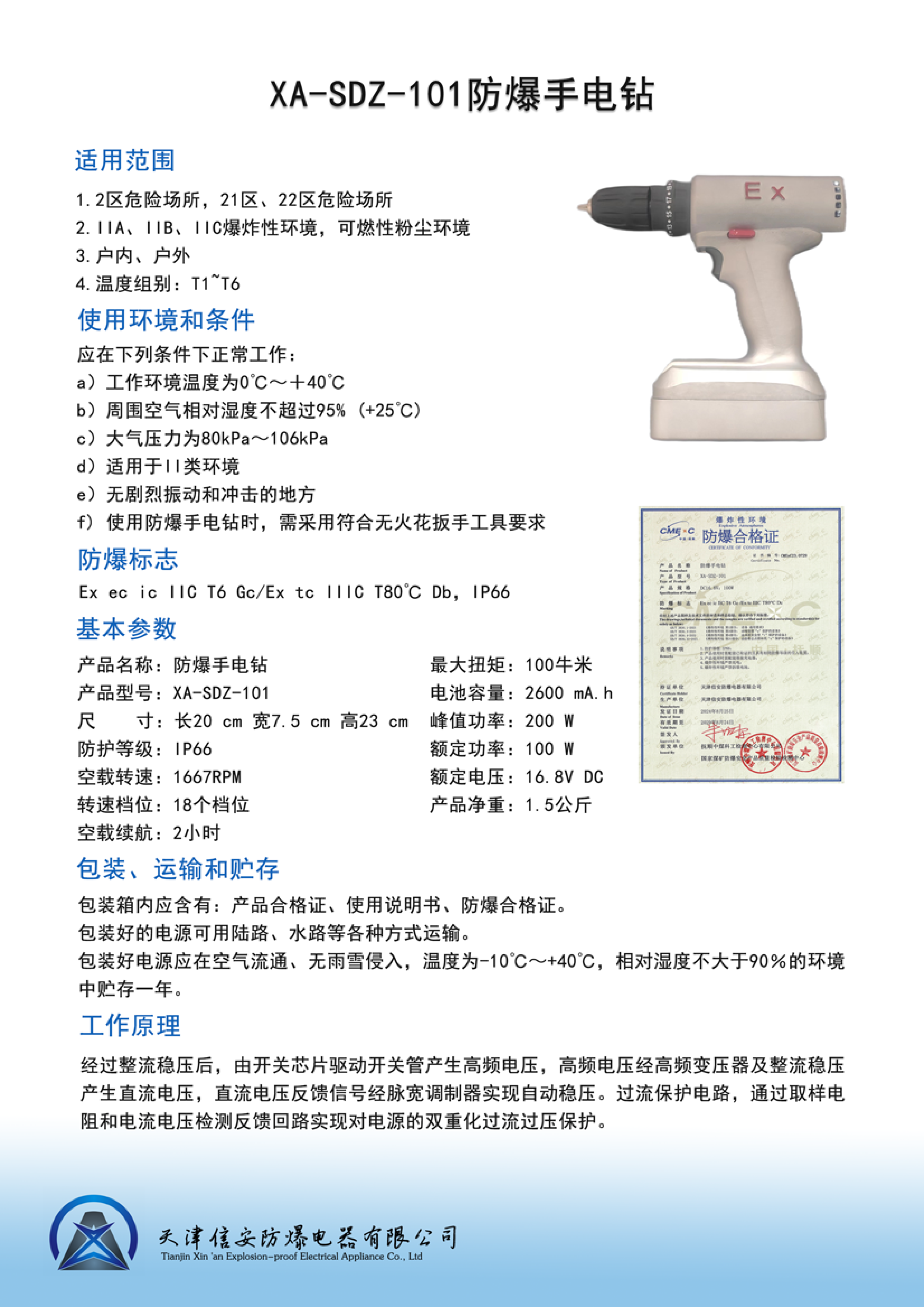 XA-SDZ-101 防爆手电钻